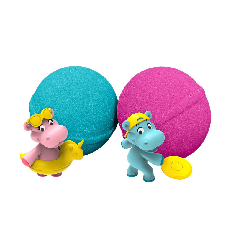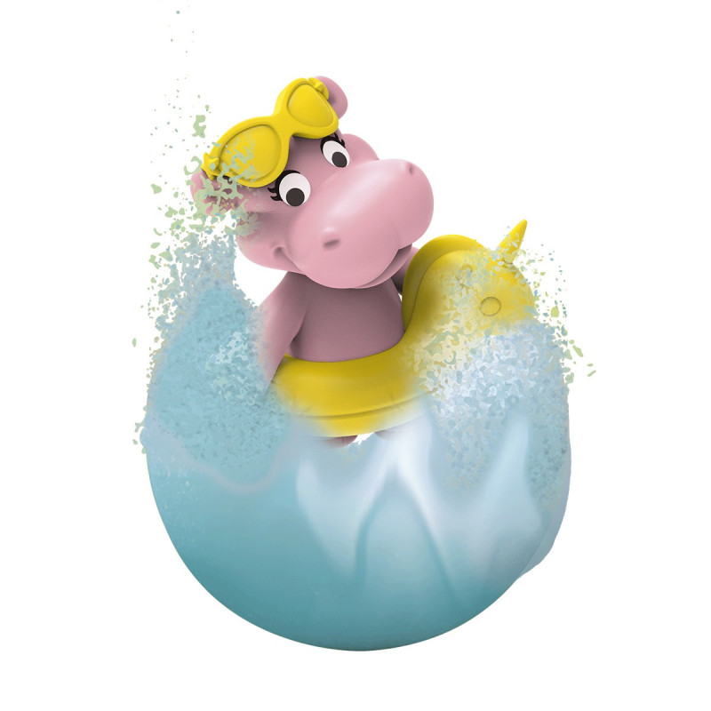 Ароматна бомбочка розчиняється й перетворюється на барвисту піну; всередині якої ви знайдете іграшку-сюрприз: колекційну фігурку Бегемотика!