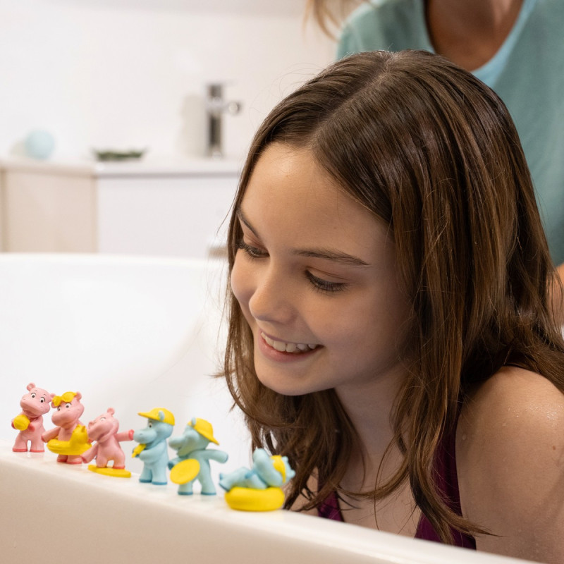 Знайомтеся з Бегемотиками! Вони живуть в ароматних бомбочках для ванни та обожнюють влаштовувати пінну вечірку у ванній кімнаті! Перетворіть процес купання на веселу та барвисту гру, з кольоровою і м'якою піною, у якій сховався іграшка-сюрприз. Поринайте в захопливі пригоди у ванній!