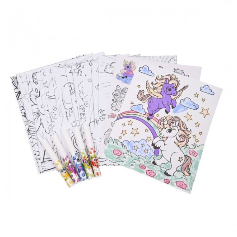 5 маркерів, 20 аркушів-розмальовок, 2 набори наліпок з проявленням кольору