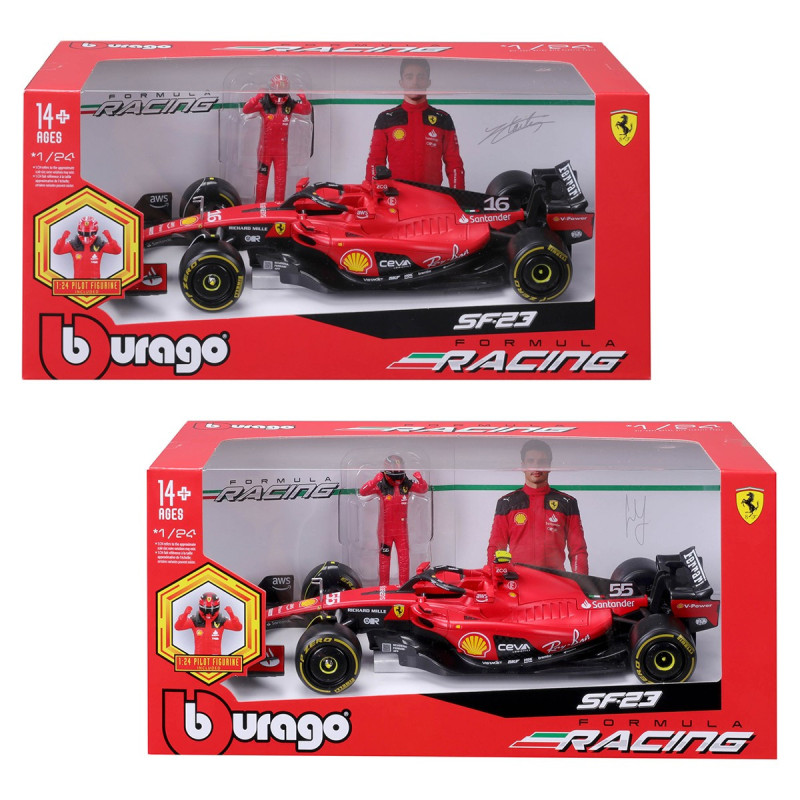 В асортименті представлено 2 варіанти автомоделей із фігурками: Шарль Леклер під номером 16 та Карлос Сайнс під номером 55.