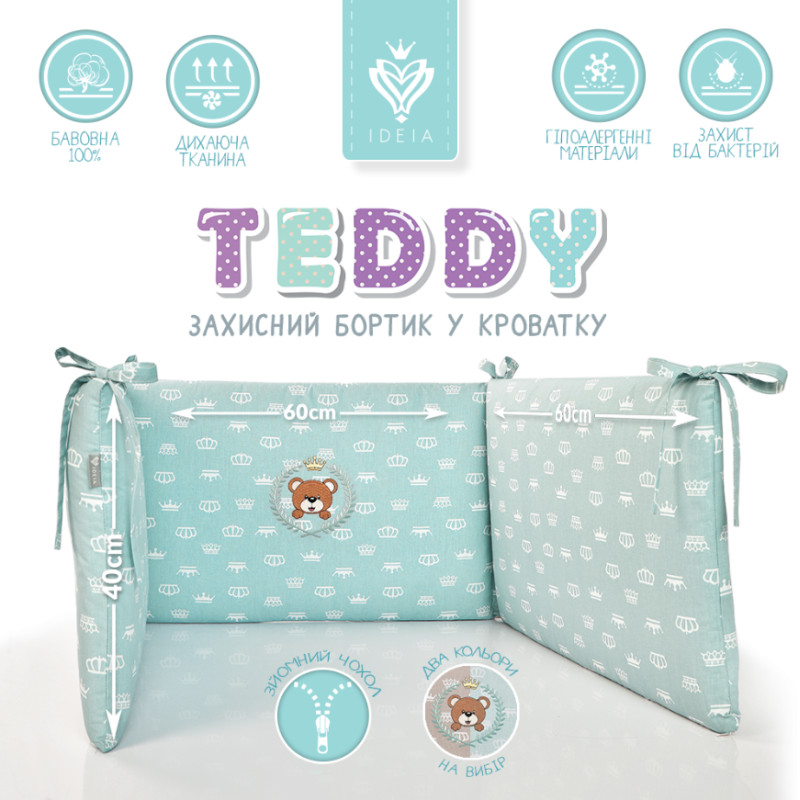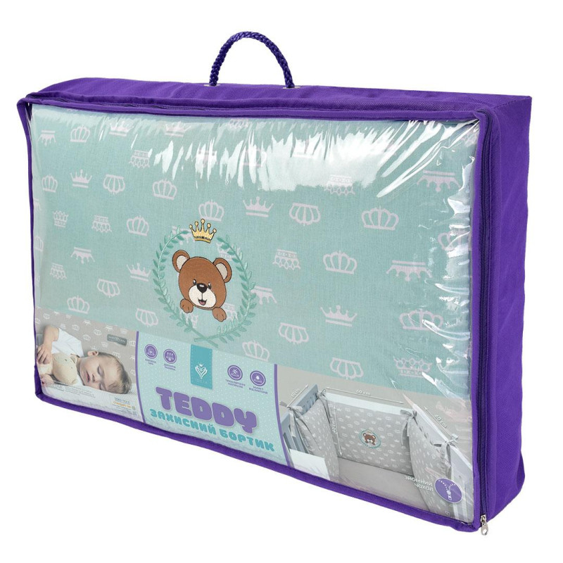 Бортик захисний у ліжечко IDEIA Papaella 198x42 см бавовна корона м'ята