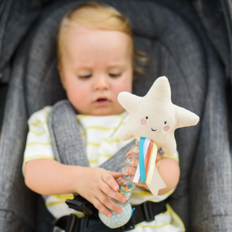 • А ще на брязкальці розташувалася м'яка плюшева зірочка.