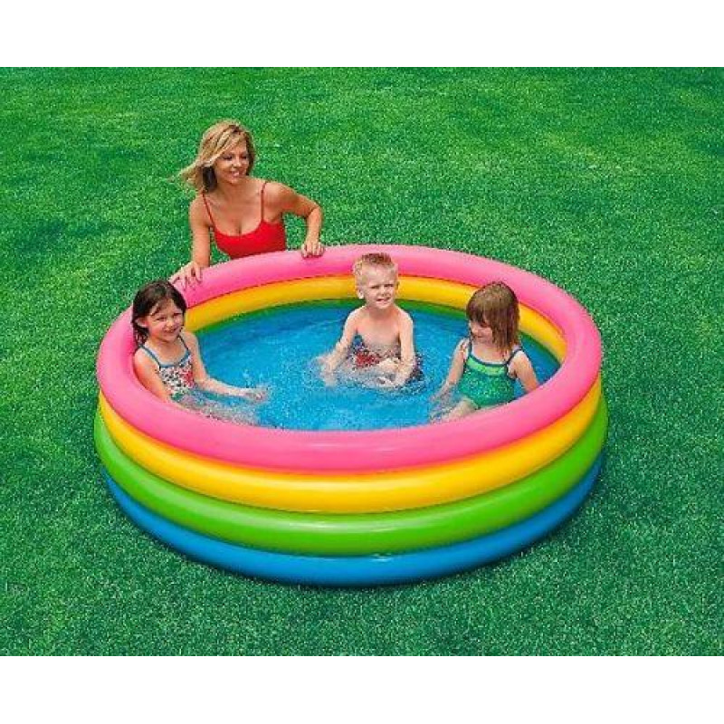 Надувний басейн "Веселі кілечка" виконаний в соковитих райдужних кольорах. Обсяг - 715 л. Для дітей від 3 до 8 років. Розмір 168 х 46 см.