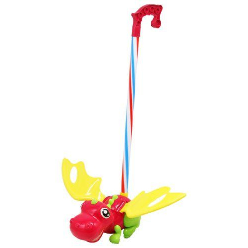 Пластикова каталка із ручкою у вигляді динозаврика. У наборі є крильця, які потрібно вставити в спеціальні отвори з обох боків іграшки. Під час руху динозаврик рухає крилами та лапками. Розмір іграшки (без ручки) – 17х14х40 см. Висота разом з ручкою – 54 см. Виконана з якісного пластику. Для дітей віком від 4-х років.