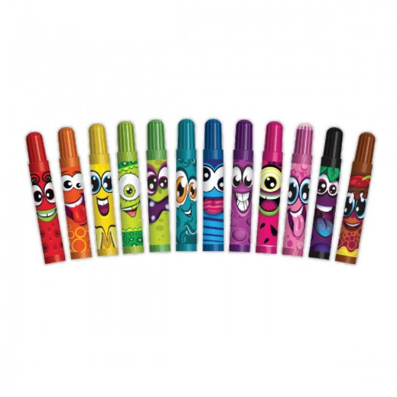 12 воскових олівців12 маркерів6 гелевих ручок10 аркушів із різнокольоровими наліпками16 розфарбо