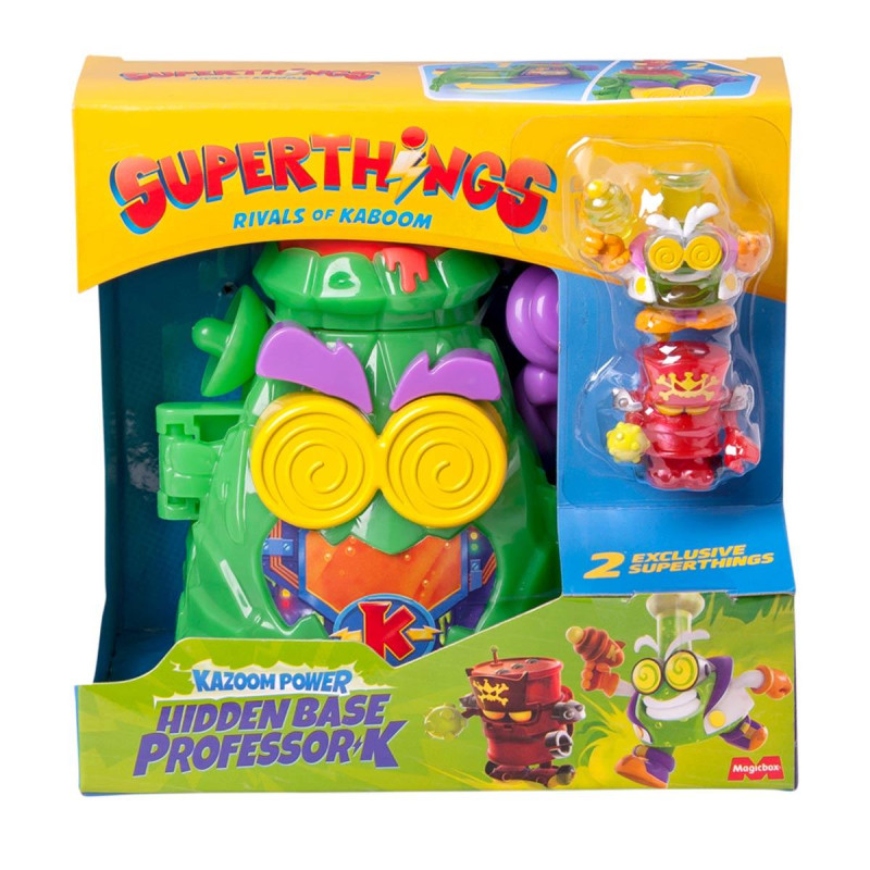 Зловісний, винахідливий і невтомний - такий він, Професор К! У своїй Прихованій базі у вигляді ігрового набору SUPERTHINGS серії «Kazoom Power» - ПРИХОВАНА БАЗА ПРОФЕСОРА К він створює різні винаходи, які працюють проти героїв міста Кабум. Обирайте сторону добра чи зла, збирайте інші ігрові набори і створюйте епічну гру-битву між затятими супротивниками!