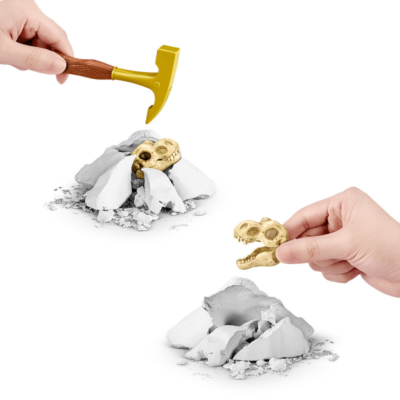 Відкривайте упаковки та шукайте частини скелета. Іграшкові кістки можуть бути заховані в слаймі, в кінетичному піску або навіть у «камені». За допомогою спеціального інструменту розбивайте камінь і знаходите частини скелета, як справжні археологи.