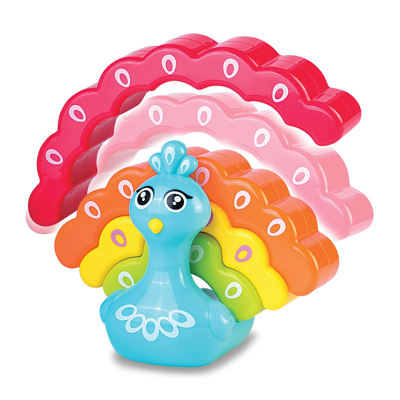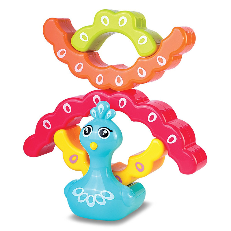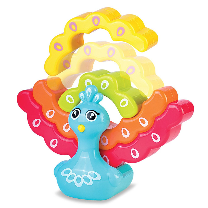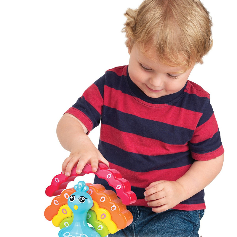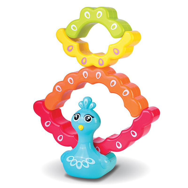 - Забавка у вигляді павенятка знайомить дитину не лише з цікавим екзотичним птахом, але й з різними кольорами і формами.