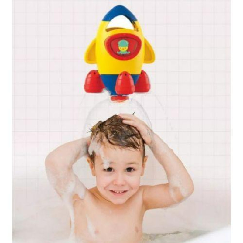 Яскраві пластикові іграшки у вигляді ракети. Якщо заповнити іграшку водою та підняти її вгору, утвориться гарний куполоподібний фонтан. Верхня частина ракети обертається довкола своєї осі. На ній також є віконця, в яких можна побачити маленькі кумедні фігурки. Висота іграшки: 18 см. Для дітей віком від 12-ти місяців.