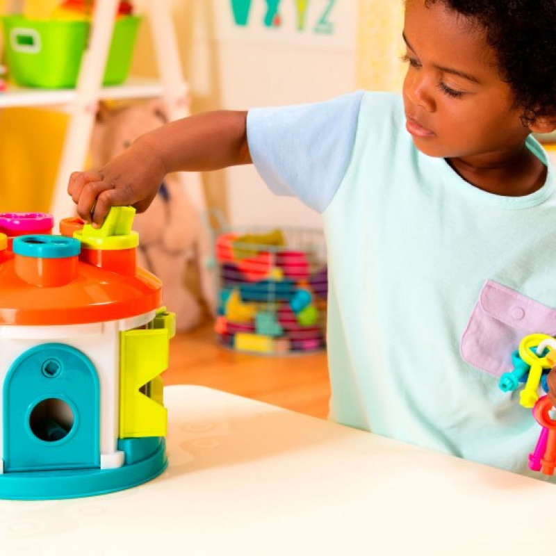 - Підбирати різнокольорові ключики за формою і кольором, щоб відкрити дверцята, буде цікаво, а також корисно для розвитку дрібної моторики і логіки дитини.