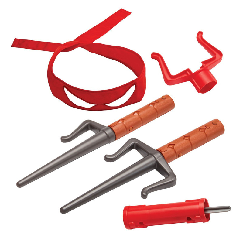 Коли лиходії атакують, вивільни силу своїх Кинджалів-Сай, вставивши додаткову рукоятку до рукоятки кинджалів! Вирівняй з’єднувальні роз’єми та кнопки, та поверни рукоятку, щоб зафіксувати їх.