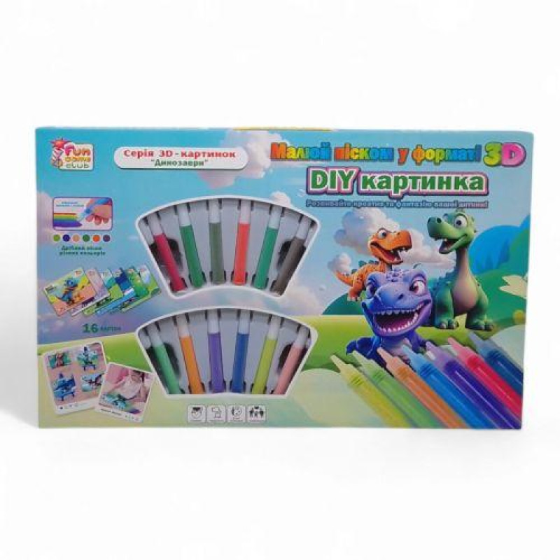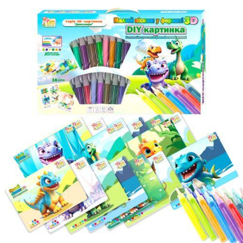 Набір для творчості "Малюй піском: Динозаври", 16 карток, 12 кольорів піску, 2 мольберти, щітка Fun