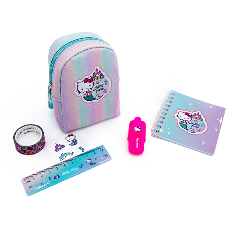 Усередині кожної сумочки є 5 предметів з брендингом HELLO KITTY. Блокнот, лінійка, наклейки — що ж вам дістанеться?