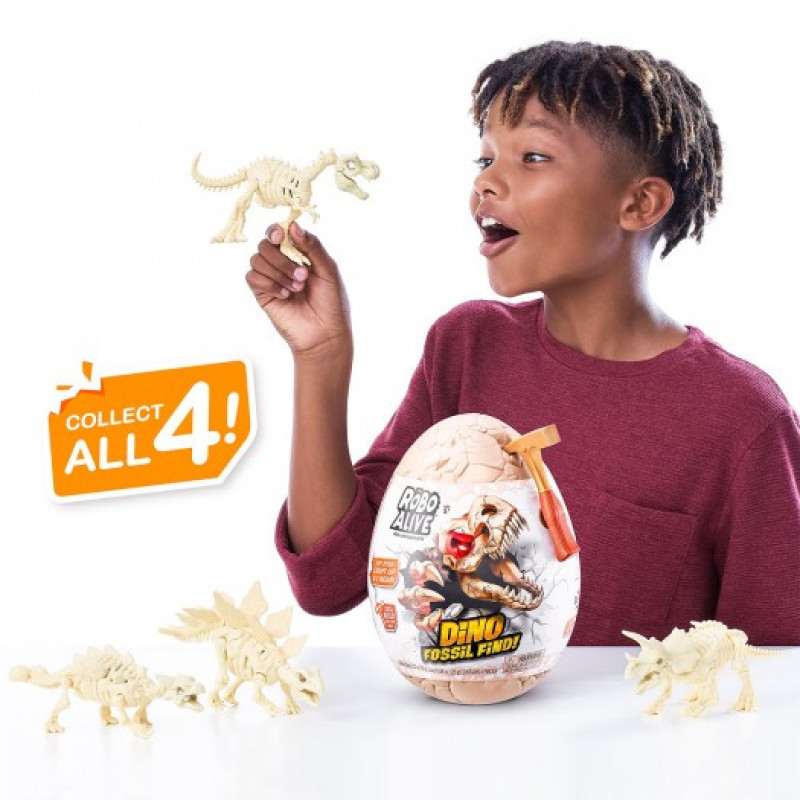 Інтерактивний ігровий набір-сюрприз ROBO ALIVE - РОЗКОПКИ ДИНОЗАВРА - чудовий подарунок для маленьких шанувальників динозаврів та скам'янілостей! Це величезне яйце, всередині якого знаходяться заховані частини скелету динозавра. Знайдіть усі елементи - в слаймі, в піску, в камені, - та зберіть скелет!