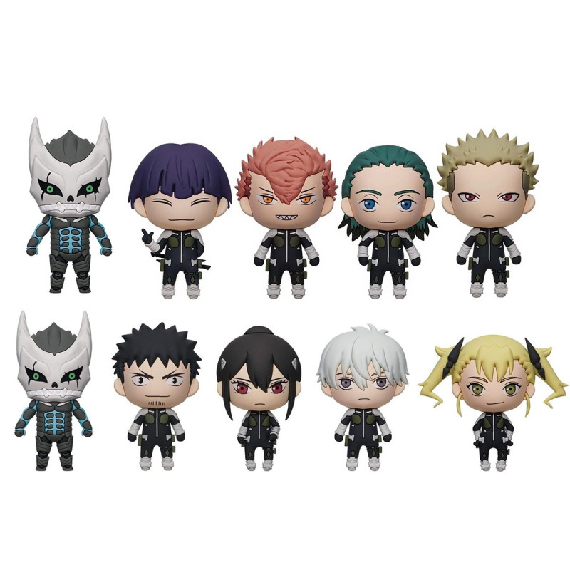 В асортименті 11 головних героїв, з яких 2 рідкісні: Кайдзю No8, Кафка Хібіно, Міна Асиро, Рено Ітікава, Кікору Синомія, Хосина Сосиро, Їхняру Фурухасі, Ідзумо Харуїті, Аой Кагурагі, Кафка (як убирач монстрів) (середній) і тематичну фігурку-постер (рідка).