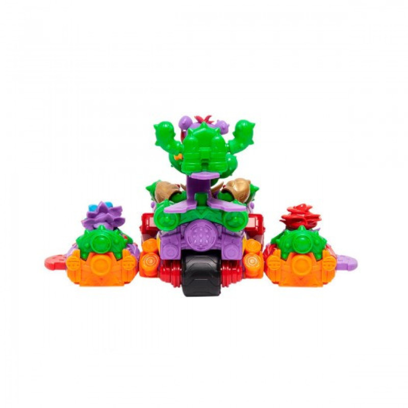 Спайк-ролер Кактус – хитрий та небезпечний житель Кабуму. Він зібрав свою команду з суперсингcів, створив неймовірну машину та подався шукати неприємностей! 2 міні-машинки кріпляться до великої машини і роблять її майже непереможною!