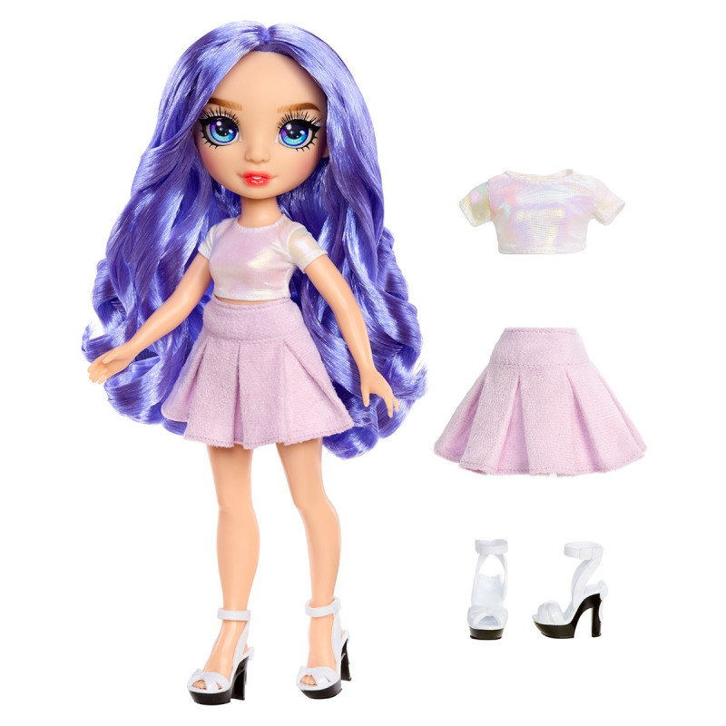 Познайомтеся з Вайолет — витонченою принцесою пастельного шику! Її ніжний ліловий лук створює відчуття легкої мрійливості, а пурпурне волосся додає яскравого, грайливого акценту до образу. Вайолет рухається з елегантністю й впевненістю, немов задає власний ритм моді, залишаючи за собою шлейф чарівності.