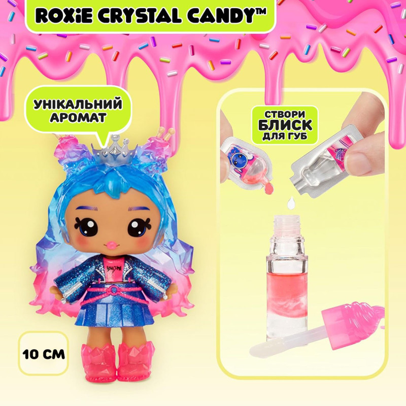 В комплект входить:1 кукла, 1 комплект одежды, 1 пара обуви, 1 бутылочка блеска для губ, 1 клипса, 1 блистер ароматизатора, 1 блистер жидкого красителя, 1 ложка для перемешивания, 1 контейнер, инструкция