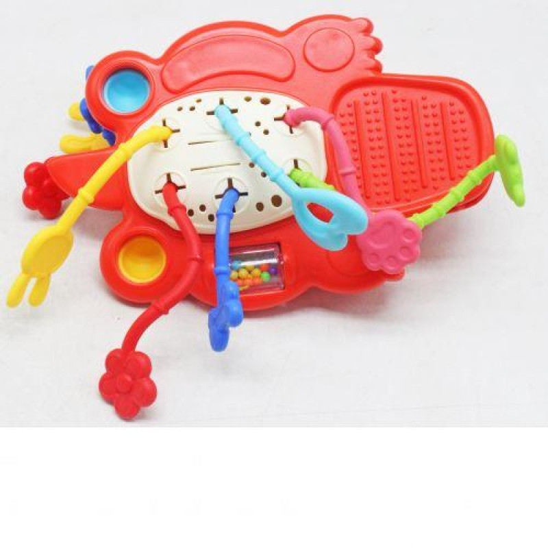 Оригінальне брязкальце "Крокодильчик" з безліччю ігрових та розвиваючих елементів. На краях тарілки розташовані гумові кнопочки "Pop It" та пластикова пересувна кнопочка, яку дитина зможе переміщати між секціями. Усередині тарілки є грімлячий елемент. Крізь основу тарілки проходять гумові шнурочки різних форм та текстур, гра з якими допоможе малюкові розвинути дрібну моторику рук. Гумові елементи також можуть виступати в ролі прорізувачів, всі елементи іграшки виконані з якісних та абсолютно безпечних для дитини матеріалів. Для дітей віком від 18-ти місяців.