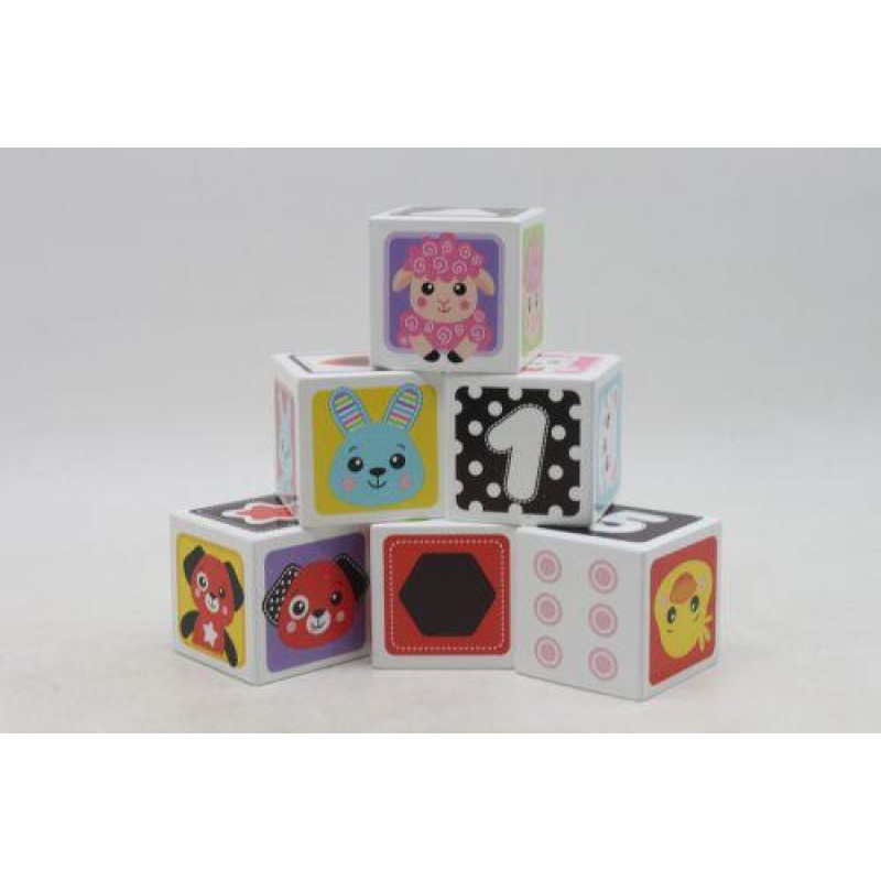 Набір із 6-ти дерев'яних кубиків "My first wooden cubes". На різних сторонах кубиків зображені звірятка, числа, різні кольори та форми, що дозволить навчити дитину безлічі нових навичок. Кубики виконані з екологічно чистих матеріалів, повністю безпечні для дитини. Розмір одного кубика: 6х6х6 см.