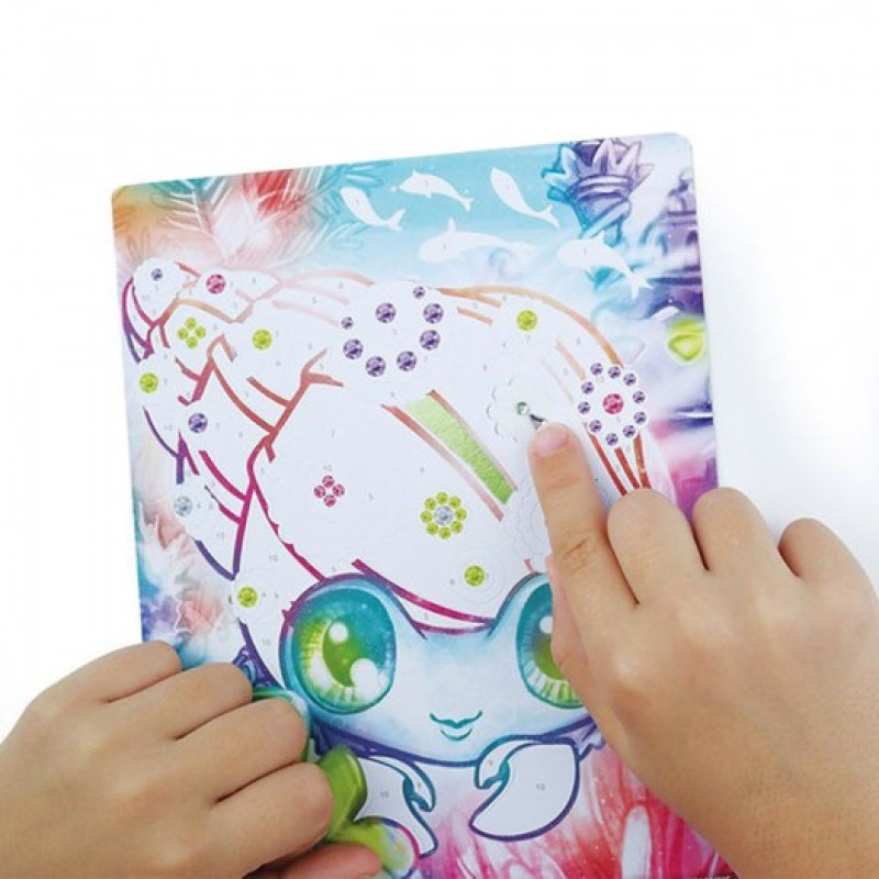 - Додайте картині магічного блиску за допомогою страз, а потім нанесіть трохи блискіток з пляшечки та розтушуйте їх пензликом. Ваша сяюча картина готова!