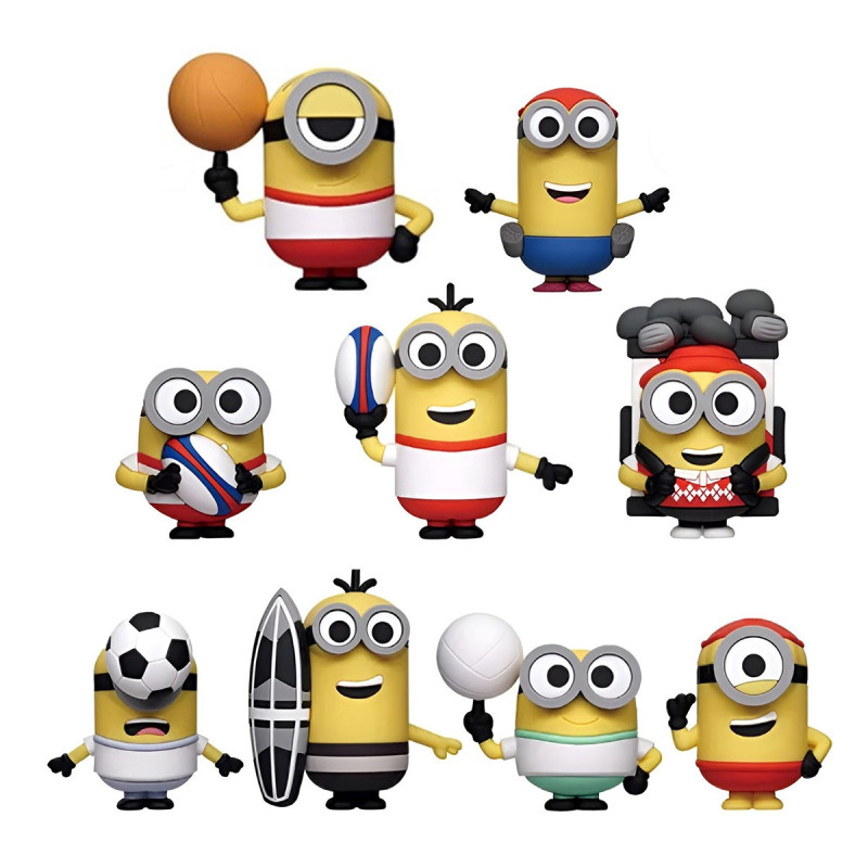 В асортименті 11 головних героїв, з яких 2 рідкісні: Стюарт (футбол), Кевін (серфінг), Боб (волейбол), Стюарт (плавання), Кевін (плавання), Стюарт (баскетбол), Боб (регбі), Кевін (регбі), Боб (гольф), фігурка-постер «Футбол» (середня) і фігурка-постер «Серфінг» (рідка).