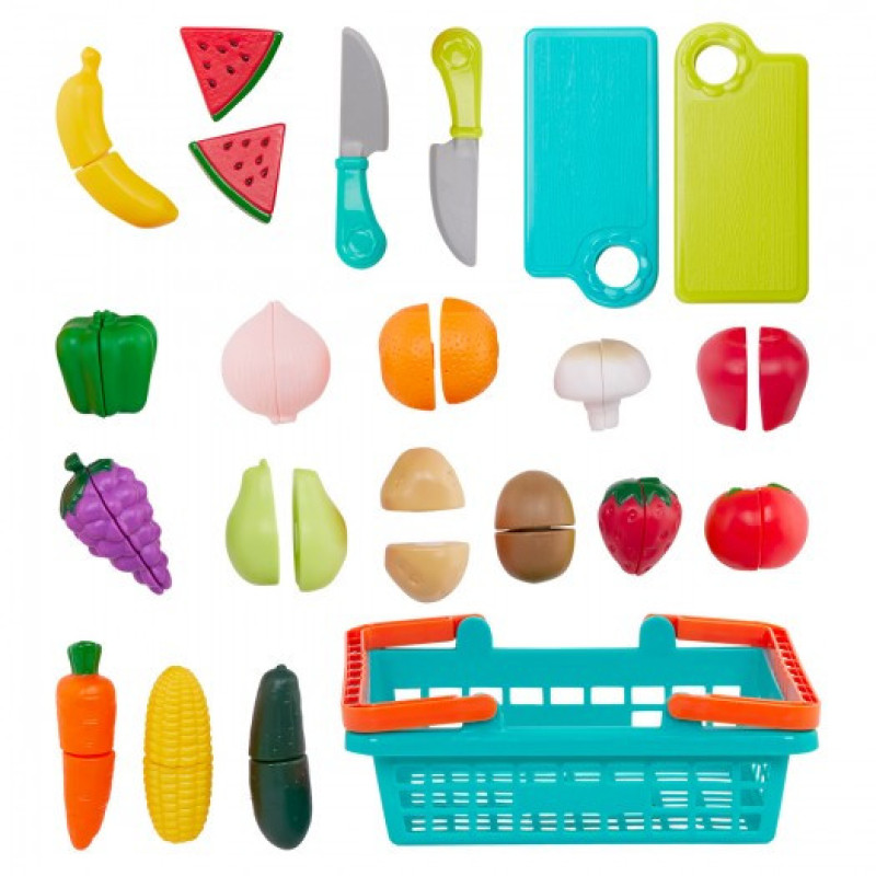 - Фрукти і овочі на липучці, їх можна розрізати пластмасовими ножами та з'єднувати назад;
