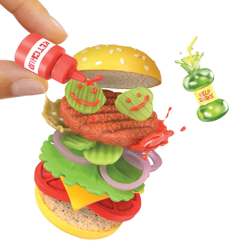 Збирай! На цьому веселощі не закінчуються! Міні-аксесуари та упаковки створені спеціально для колекціонування. Від міні-версій кухонного приладдя до баночок із соусом — у серії «SpongeBob» понад 60 унікальних інгредієнтів, упаковок і міні-аксесуарів, які ти можеш зібрати. Побудуй свій власний світ смаколиків Краста Краба!
