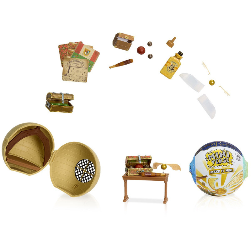 Розпакуйте! Кожна кулька містить реалістичні іграшкові мініелементи для створення власної мініверсії чарівного предмета! Вони діляться на категорії: догляд за магічними істотами, травоведення, ворожіння, квіддич і необхідне для Гоґвортсу. Який саме набір вам дістанеться — дізнаєтеся тільки після розпакування!