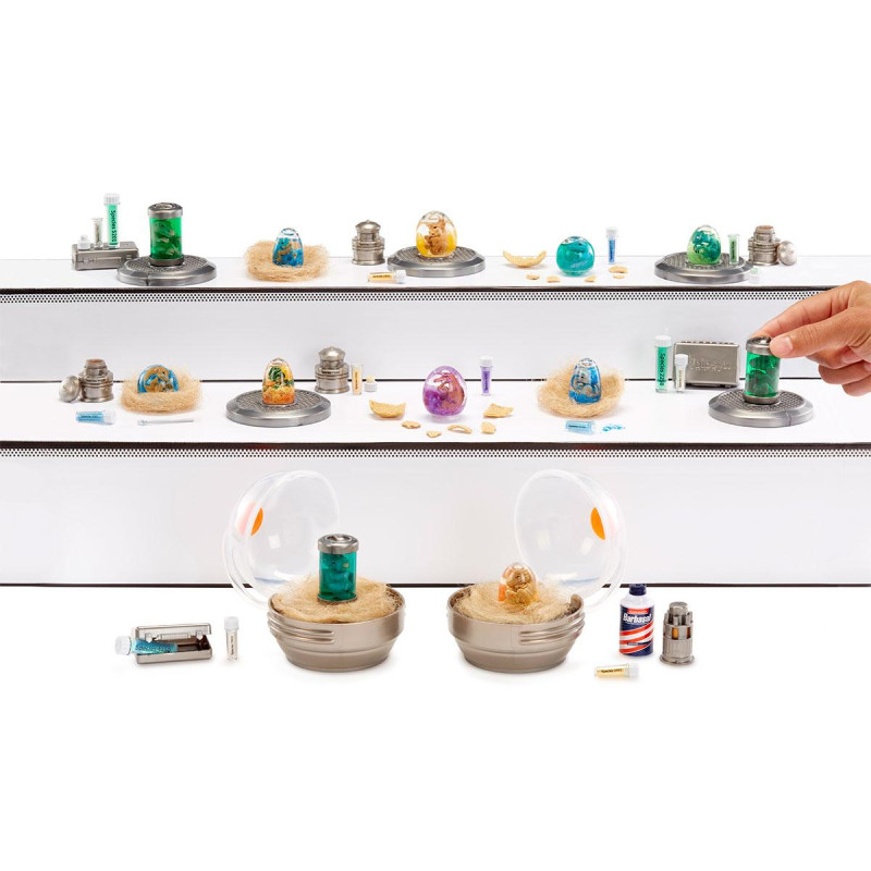 Створіть! Порівняйте вміст кульки з листом колекціонера, щоб визначити, який динозавр потрапив саме до вас. За інструкцією введіть «глітерний ДНК-порошок» і рідину в яйце або циліндр, струсіть і спостерігайте, як з'являється ваш іграшковий динозавр. Це науковий експеримент у мініатюрі!