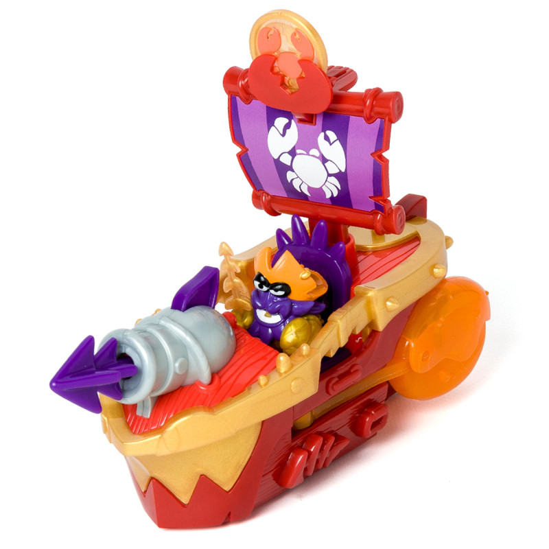 Активуйте суперфункцію корабля! Вставте ексклюзивну монету із зображенням краба у виступ у формі клешні на верхівці щогли. Натисніть вниз, і з боків корабля миттю з'являться клешні, які ви можете відкривати та закривати на кінцях. Щоб деактивувати суперфункцію, зведіть клешні назад у вихідне положення до звуку «клік».