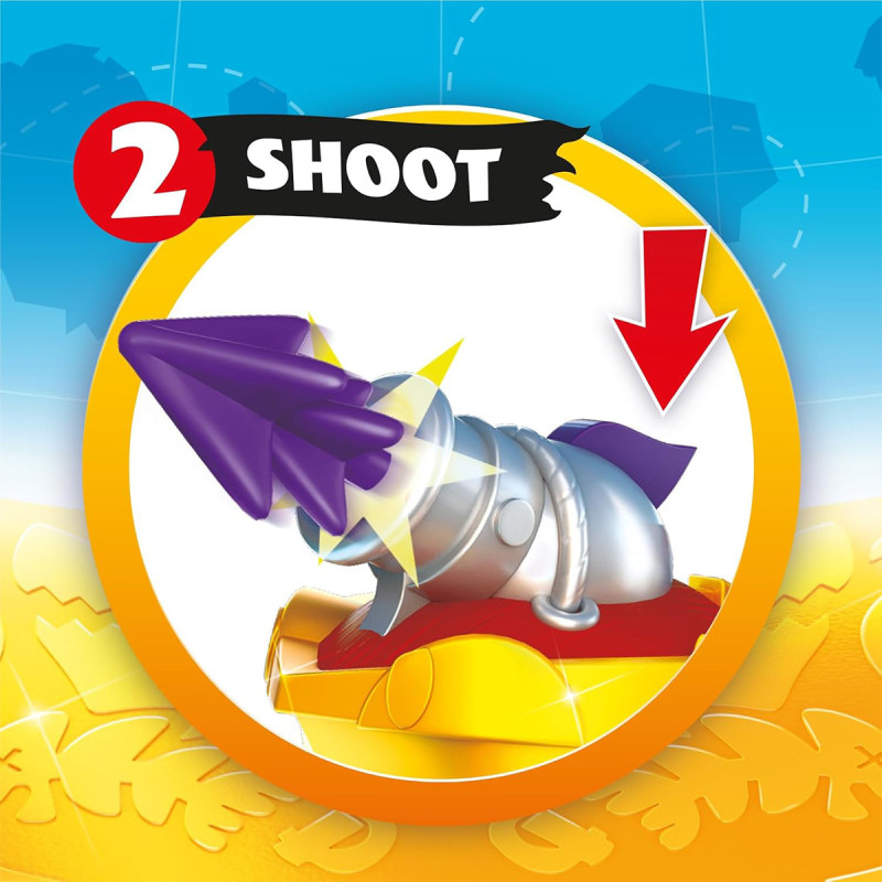 Штурмуйте міцність Піратиксів за допомогою потужної гармати на кораблі! Вставте снаряд до звуку «клік» і натисніть на кнопку зверху гармати та снаряд полетить у заданому напрямку.