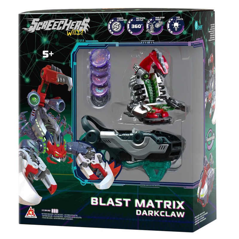 Прокачайте гру з ігровим набором SCREECHERS WILD! S5 L2 – ДАРККЛО! Скрічер трансформується з крутого авто в потужну бойову тварину або робота за допомогою запускача-бластера і магнітного енергодиска! Збирайте скрічера і досліджуйте два варіанти гри!
