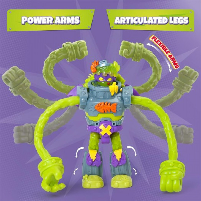 - У Супербота потужні гнучкі руки та ноги з артикуляційними точками для видовищних битв на землі та в повітрі!