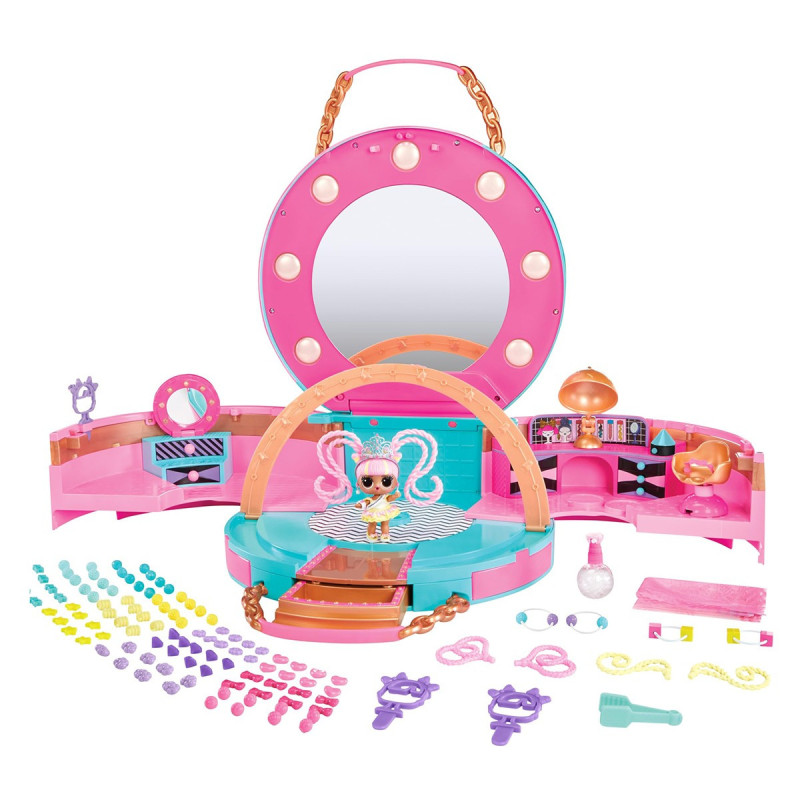 Лялечка L.O.L. SURPRISE! збирається на найкращу вечірку цього року. Тільки Ви зможете її підготувати до цього свята та зробити лялечку найяскравішою та стильною. Зустрічайте ігровий набір з лялькою L.O.L. SURPRISE! - САЛОН ФЕЄРИЧНИХ ЗАЧІСОК З НАМИСТИНОК. Це розкладний набір у вигляді компактної сумочки блакитно-рожевого кольору, з ручкою-ланцюжком. Поринайте у творчість з L.O.L. SURPRISE!