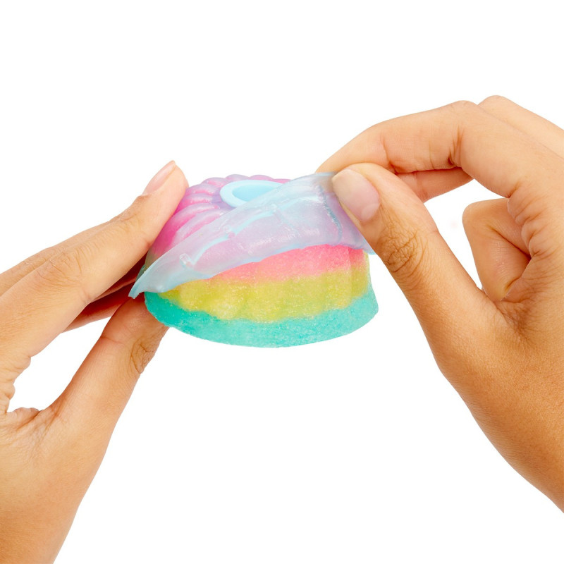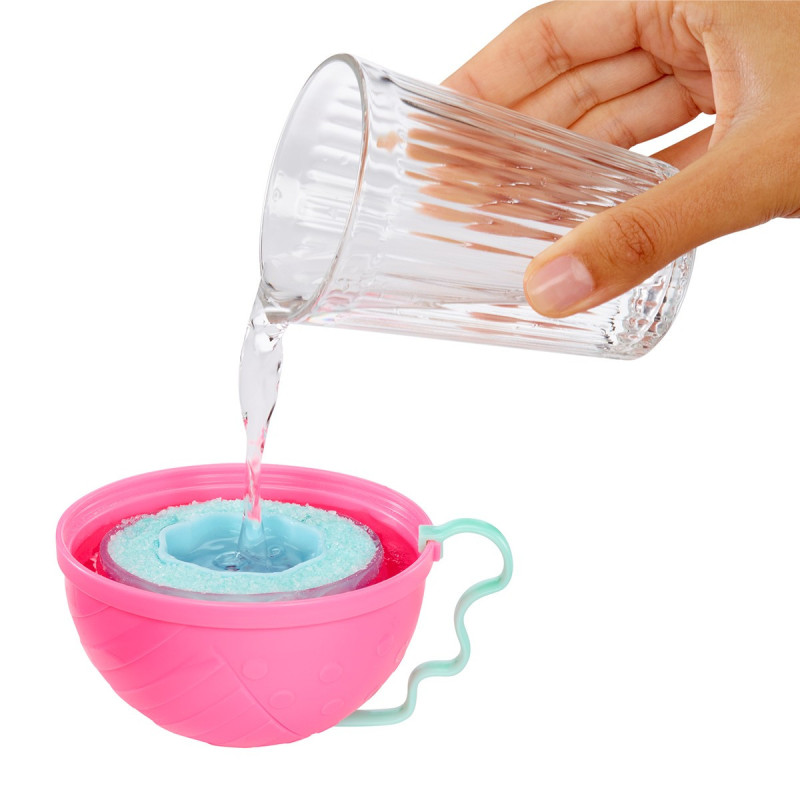 До комплекту входить — 1 лялька, 1 одяг, 1 пара взуття, 1-2 аксесуари, 1 форма для торта-спідниці, 3 пакетики суміші, 1 пакет;