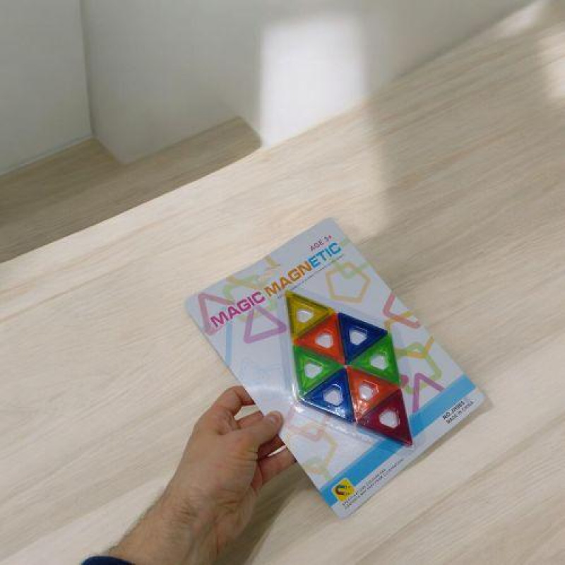 Магнітний конструктор включає 8 яскравих трикутних деталей, які легко з'єднуються завдяки вбудованим магнітам. Ідеально підходить для розвитку уяви, конструкторських здібностей, дрібної моторики та просторового мислення у дітей. Розмір однієї деталі – 5,5 х 5 х 0,5 см.