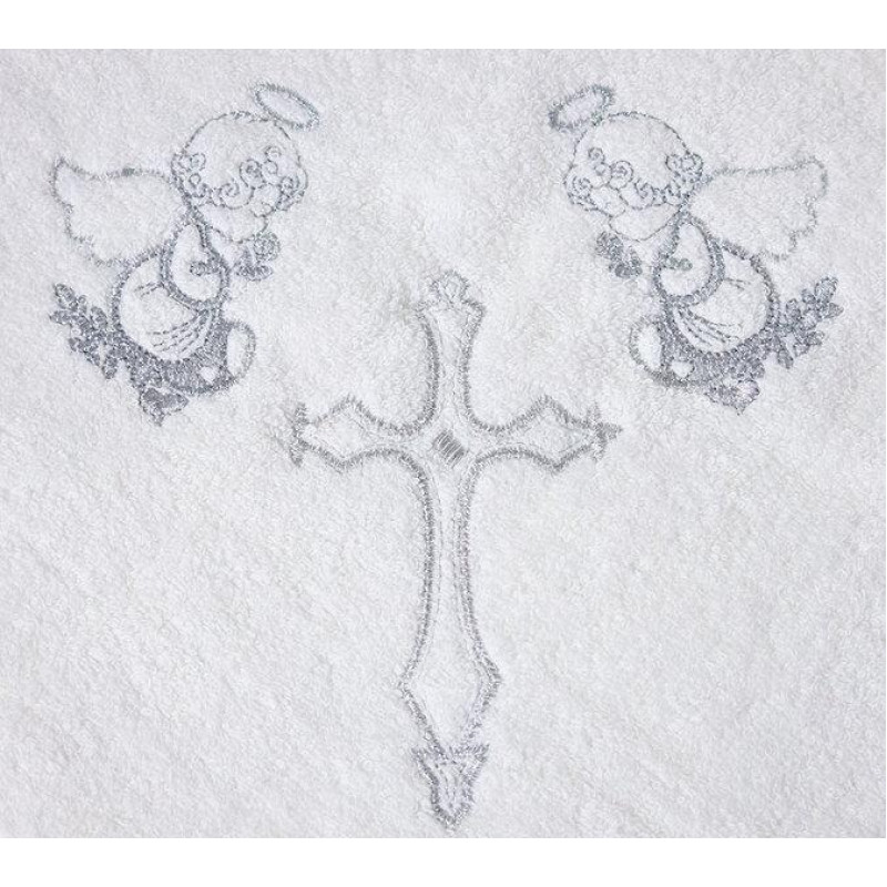 Крижма Gulcan - Ангел з кольоровою вишивкою срібло 100*100