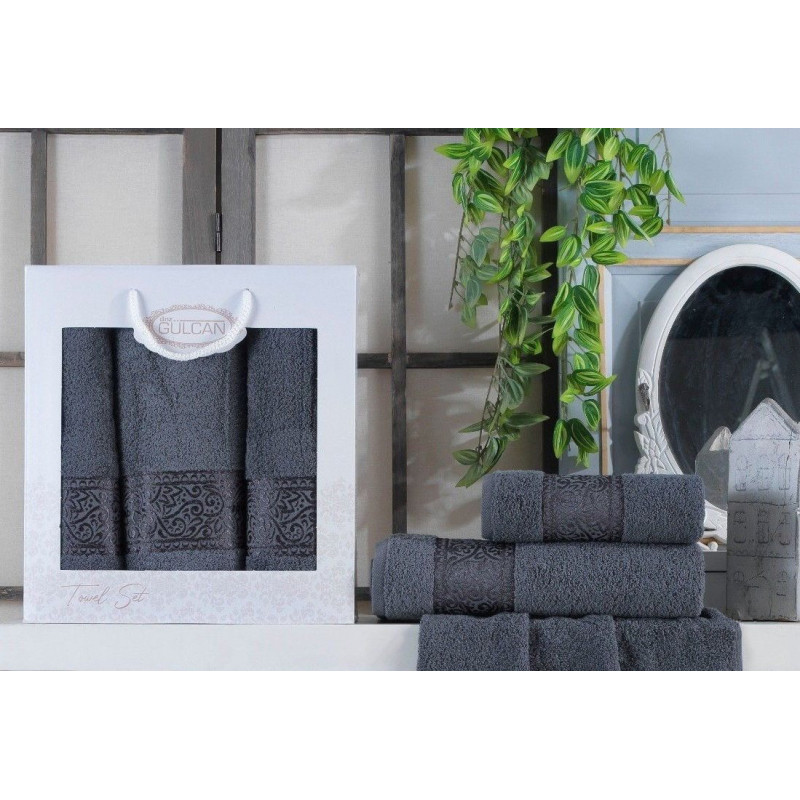 Набір рушників Gulcan Cotton — Ornament Dark Grey 50*90 (2 шт.)+70*140 (1 шт.)