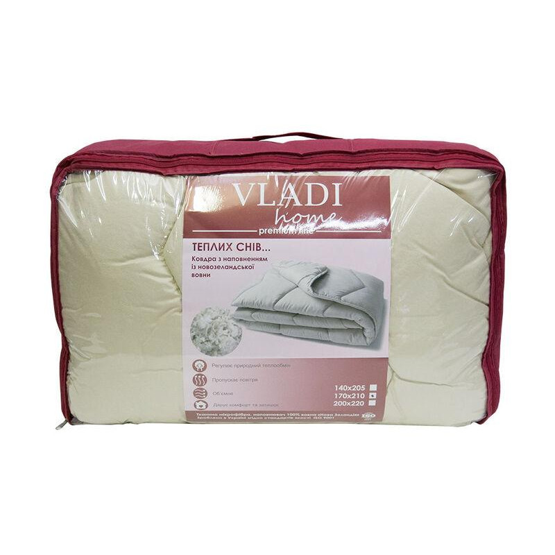 Ковдра вовняна стьобана Vladi — Світло-бежева 170*205 двоспальна (400 г/м2)