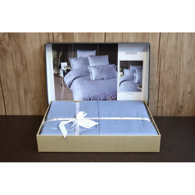 Постільна білизна First Choice сатин жаккард — Stesha dusty blue євро