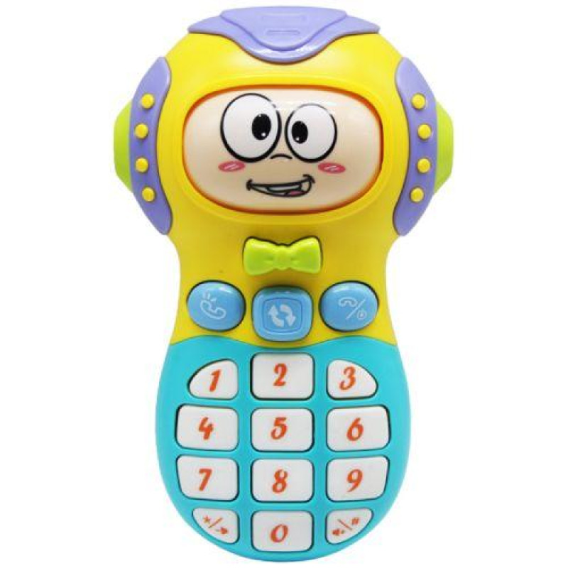 Інтерактивна іграшка "Телефон" надовго захопить дитину. Видає різноманітні звуки при натисканні на кнопочки. Має три режими гри, які можна змінювати, натискаючи кнопку посередині: іграшка може програвати мелодії, відтворювати кумедні мультяшні звуки або видавати звуки натискання кнопок, як на справжньому телефоні. Ще однією цікавою особливістю іграшки є те, що при натисканні на кнопочку-бантик, іграшка змінює вираз обличчя (працює як барабан, що повертається при натисканні). Розмір іграшки: 14х5х5.5 см.