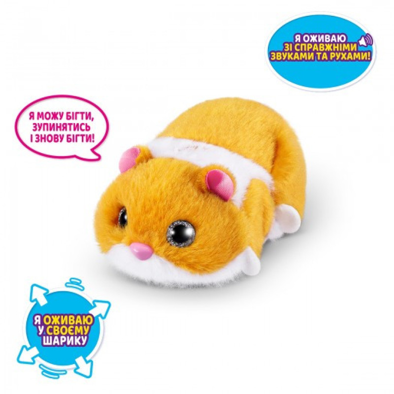 Знайомтеся з пухнастим помаранчевим хом'ячком з колекції Pets Alive! Інтерактивний улюбленець з неймовірно м'яким хутром та милими звуками справжнього хом’ячка, не залишить нікого байдужим. Увімкніть його, і яскравий хом'ячок почне бігати та метатися, немов справжній. Також він має прозору прогулянкову кулю та може бігати у ній або без неї! Починайте гру з кумедним хом’ячком і насолоджуйтеся гарним настроєм на весь день!