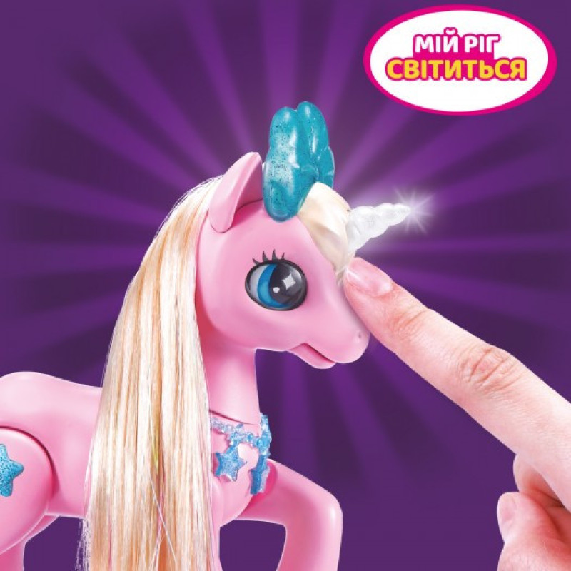 - Іграшка реагує на дотик - погладьте носик єдинорога, і почуйте справжні звуки єдинорога!