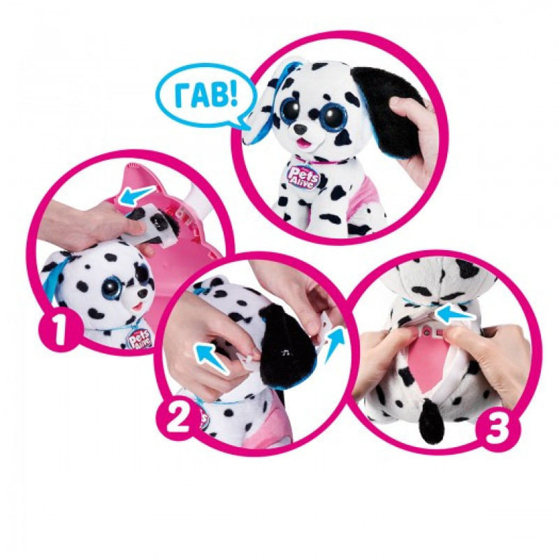 Знайомтеся з милими цуценятами-бешкетниками з колекції Pets Alive! Вони кумедні та вчаться ходити до туалету. Пригостіть їх кісточкою, щоб побачити, як вона чарівним чином змінює колір у роті цуценяти перед випорожненням назовні! Натисніть на вушко та почуйте милі щенячі звуки! Дізнайтеся, яке цуценя потрапило до вас і починайте веселу гру!