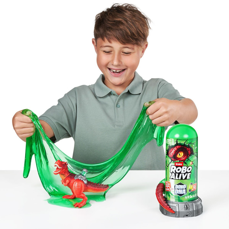 7 элементов динозавра, игрушечная ДНК-капсула, туба со слаймом внутри, инструкция