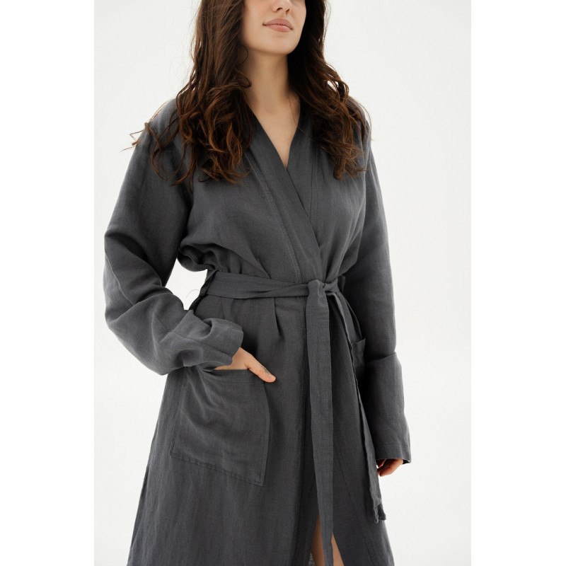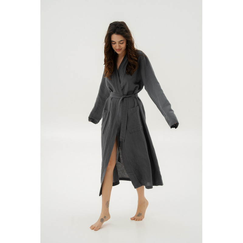Халат-кімоно з льону Lotus Home — Madrida антрацит L/XL