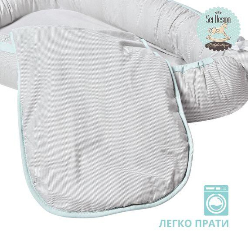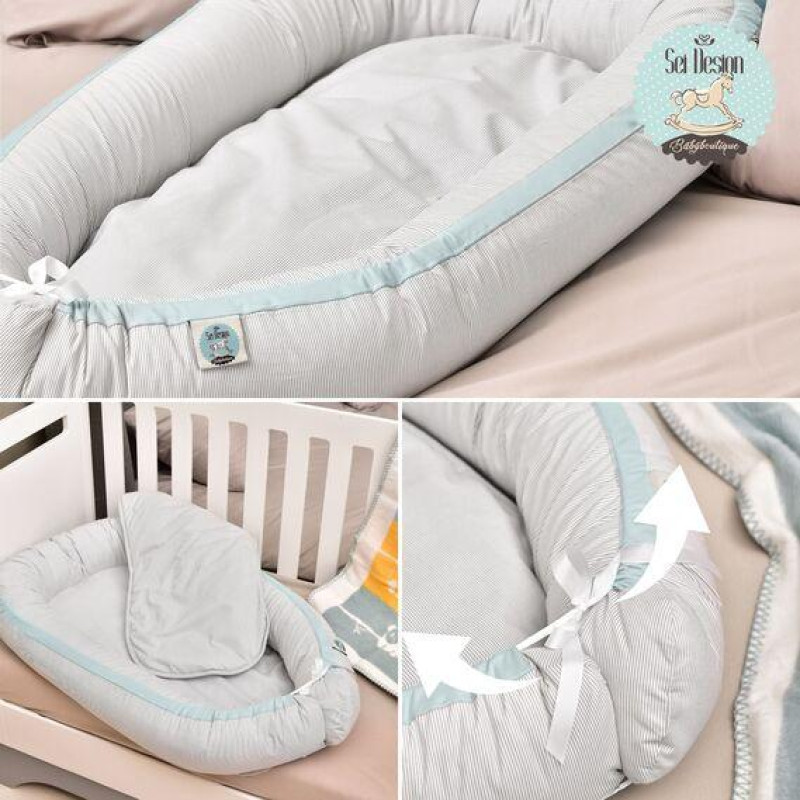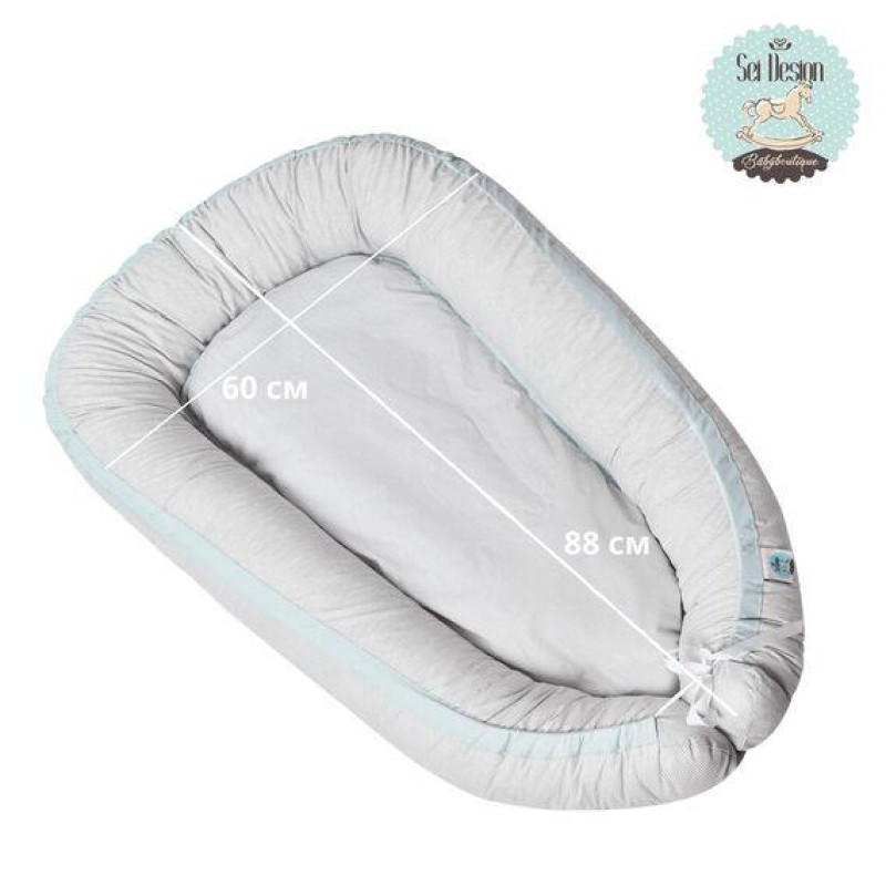Кокон гніздечко позиціонер для сну немовлят IDEIA - SEI DESIGN бавовна 88х60х12 см смужка сіра