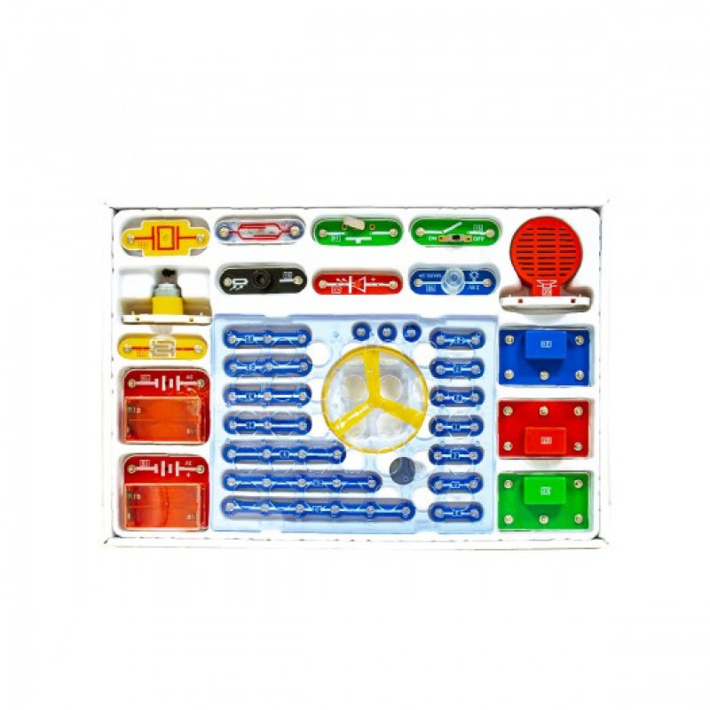 Конструктор дозволяє дитині своїми руками створювати музичні дзвінки, охоронні сигналізації, імітатори звуків, автоматичні освітлювачі, а також кумедні ігри та іграшки. Завдяки оригінальному способу з’єднання деталей Ви зможете домогтися швидкого і ефективного результату без використання паяння.