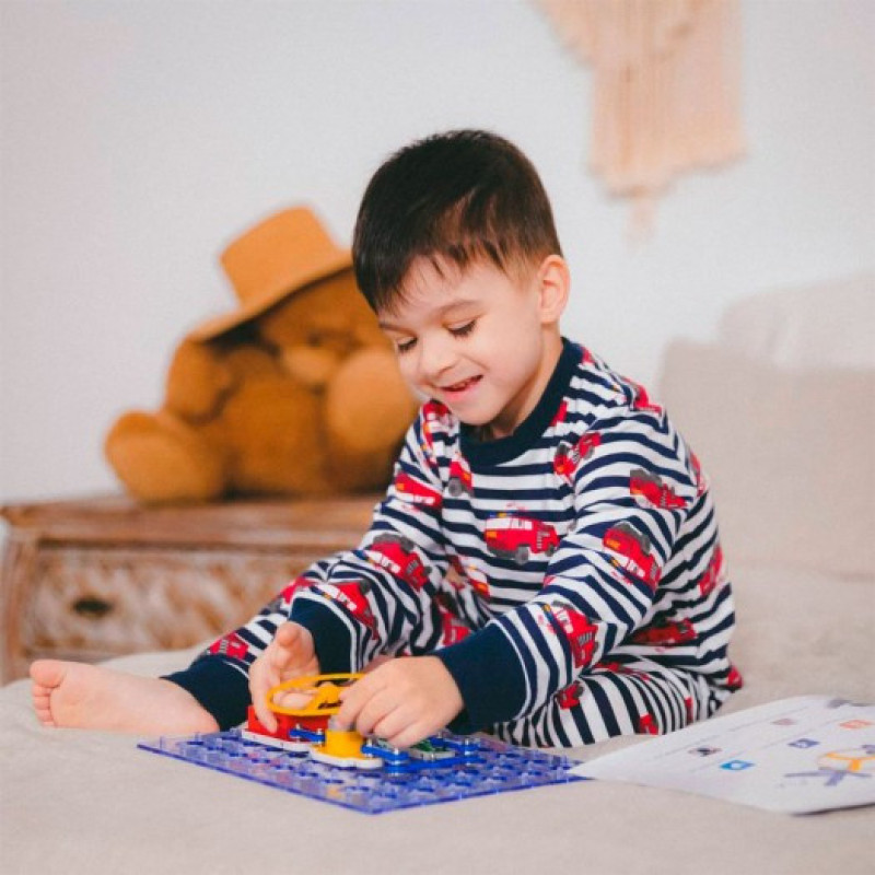 До комплекту також входить інструкція, за допомогою якої малюк зможе зібрати 201 електросхему, що дозволяють на практиці освоїти ази управління світлом, звуком, електрикою і водою.